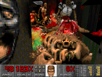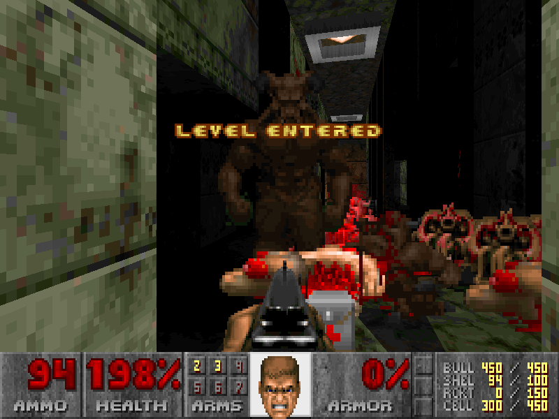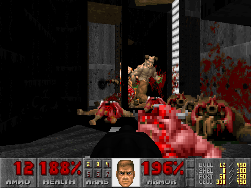 Random Slaughtermap generator is a mod that generates a procedurally generated doom 2 map that ranges in difficulty from hard to slaughtermap difficulty.... It uses a prefab system based on a grid of tiles that get raised to form height variation, ceiling lowered to form lower ceilings, retextured, light level changed and then enemy/item/weapon spawned, all with random numbers to ensure a different level every time... Each room will be different looking every time you play a map with this and it will always produce a map of a certain difficulty...